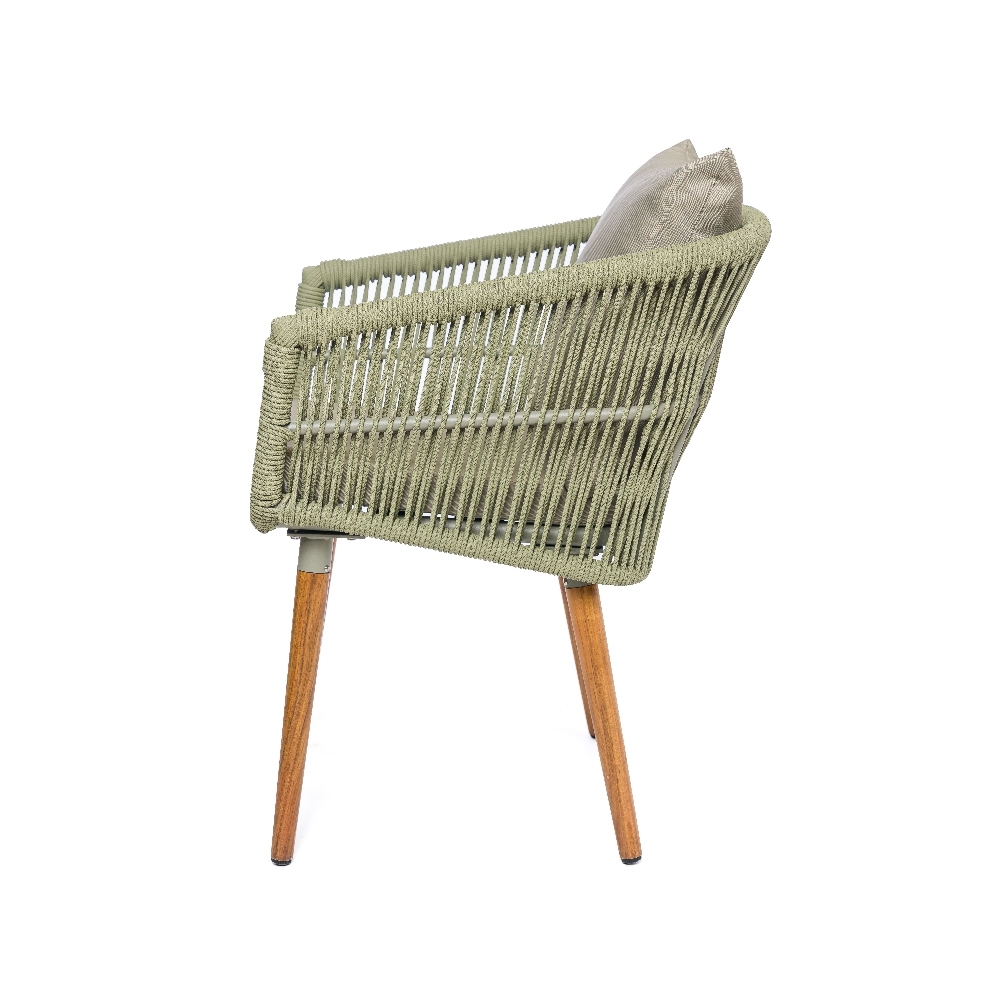 A Cadeira Damen Green é fabricada com estrutura em alumínio e revestimento em corda, trazendo um estilo moderno e funcional. Perfeita para ambientes externos como varandas e áreas de lazer, seu design versátil também permite que seja usada em interiores contemporâneos, proporcionando conforto e sofisticação.