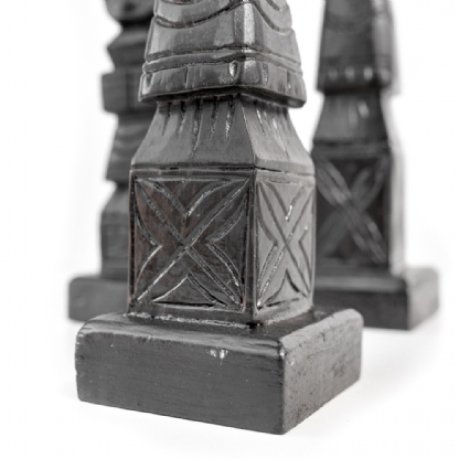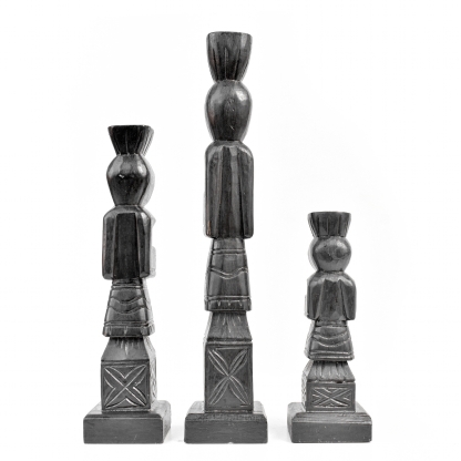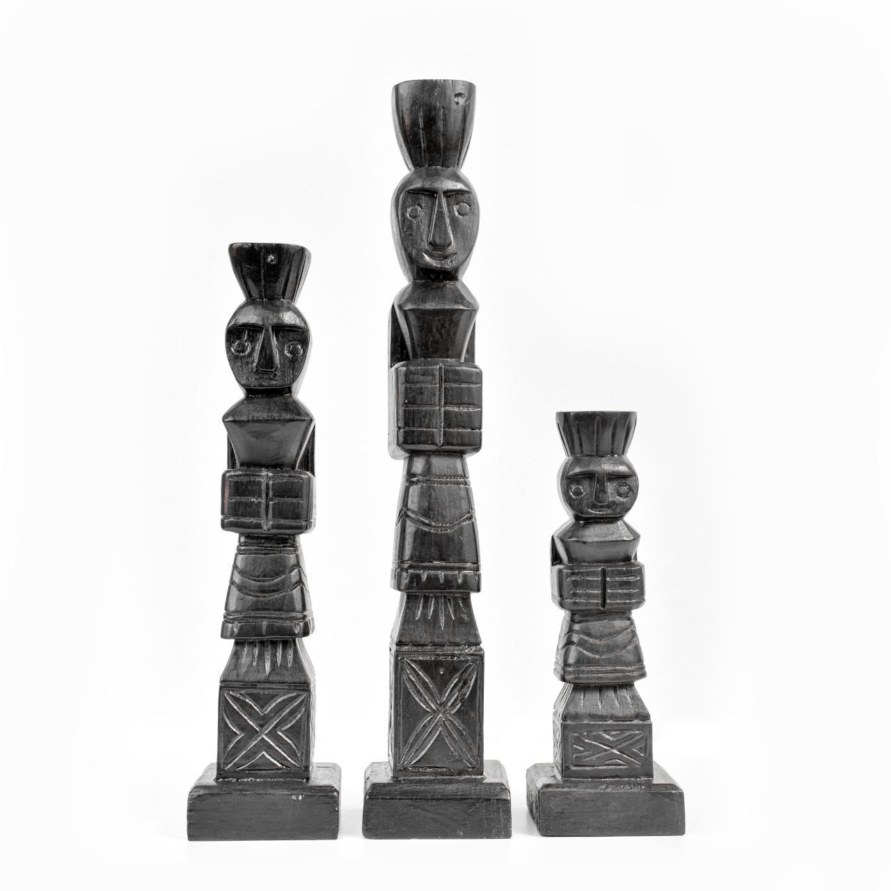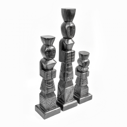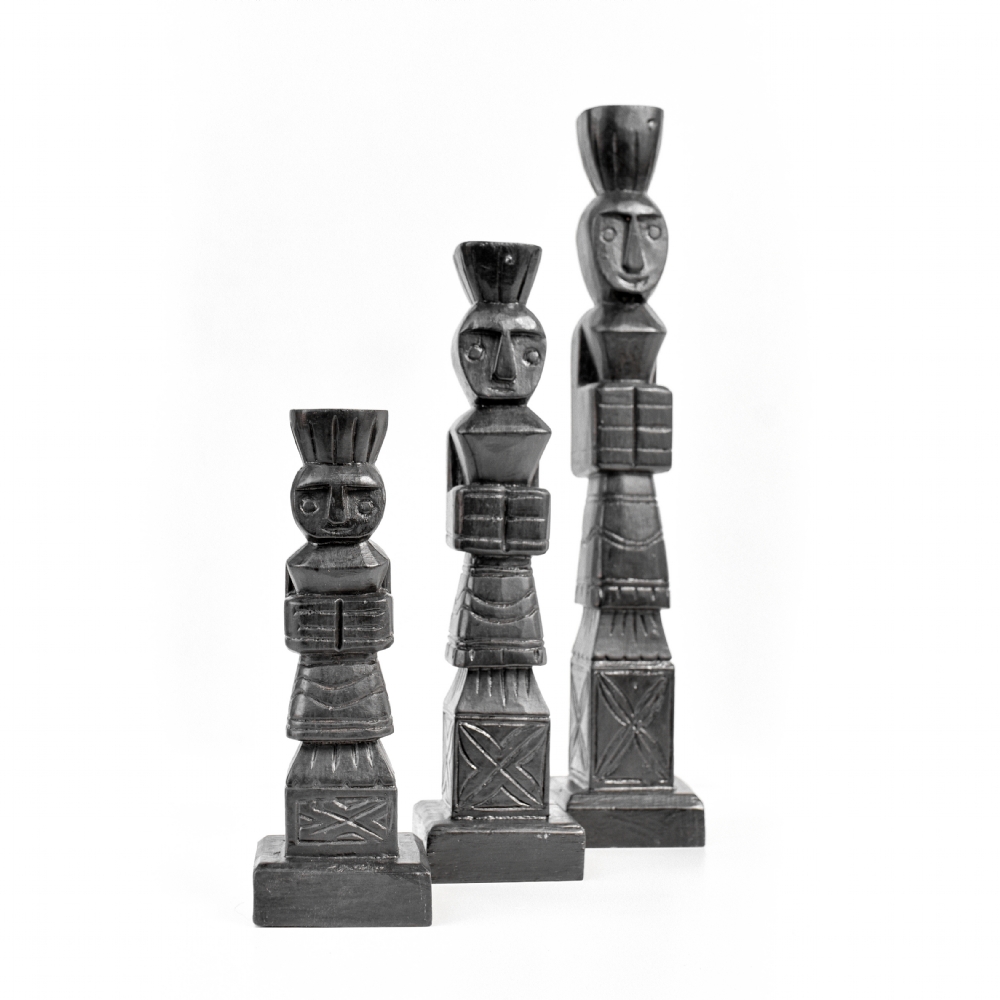 Nosso trio de estátuas Kimo são esculpidas a mão, inspiradas na Ilha de Sumba Indonésia. Tradicionalmente, as estátuas de Sumba são colocadas dentro e ao redor da entrada da cabana, protegendo e curando os que estão dentro. Com esse especial significado, essas peças ficarão incríveis em qualquer ambiente que precisem de um toque de autênticidade, pois carregam em si uma presença e elegância única.