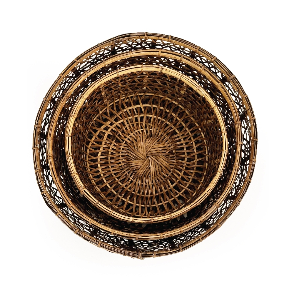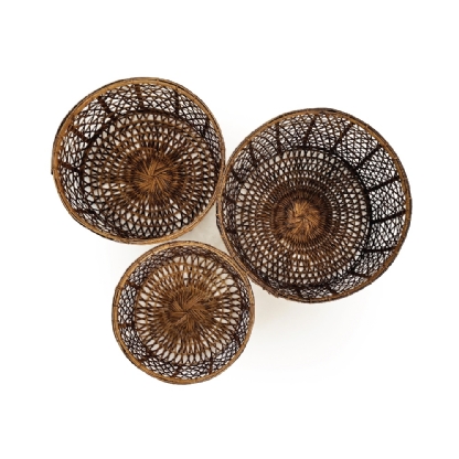 Com um design clássico e artesanal, o Conjunto Cestos Rattan/Bambu Jaden é ideal para quem busca organização com sofisticação. Seus materiais naturais proporcionam um acabamento único.