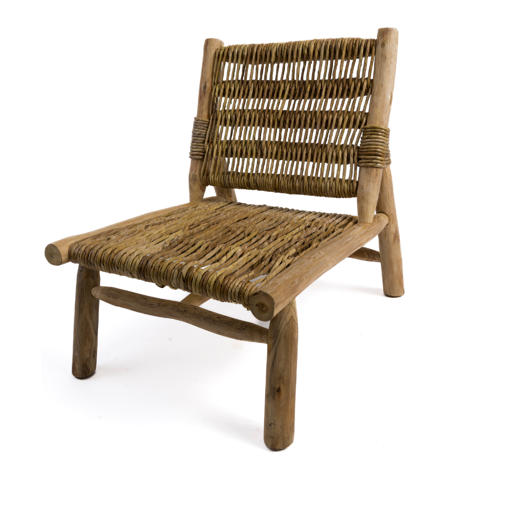 A Poltrona Teca/Fibra Banana Manui é sinônimo de conforto e exclusividade. Sua estrutura em madeira teca combinada com fibra de banana confere um visual natural e elegante, ideal para compor ambientes sofisticados. Seu design ergonômico proporciona uma experiência de uso aconchegante, tornando-a perfeita para espaços de relaxamento. A fibra de banana presente na Poltrona Teca | Fibra Banana Manui, com sua flexibilidade natural e textura única, forma a estrutura principal da poltrona, criando curvas suaves e detalhes intricados. Cada fio é habilmente entrelaçado para formar uma estrutura robusta e ao mesmo tempo leve, que se adapta confortavelmente ao corpo. Esta escolha de material não só confere uma sensação de conforto, mas também adiciona uma beleza orgânica e natural ao design.